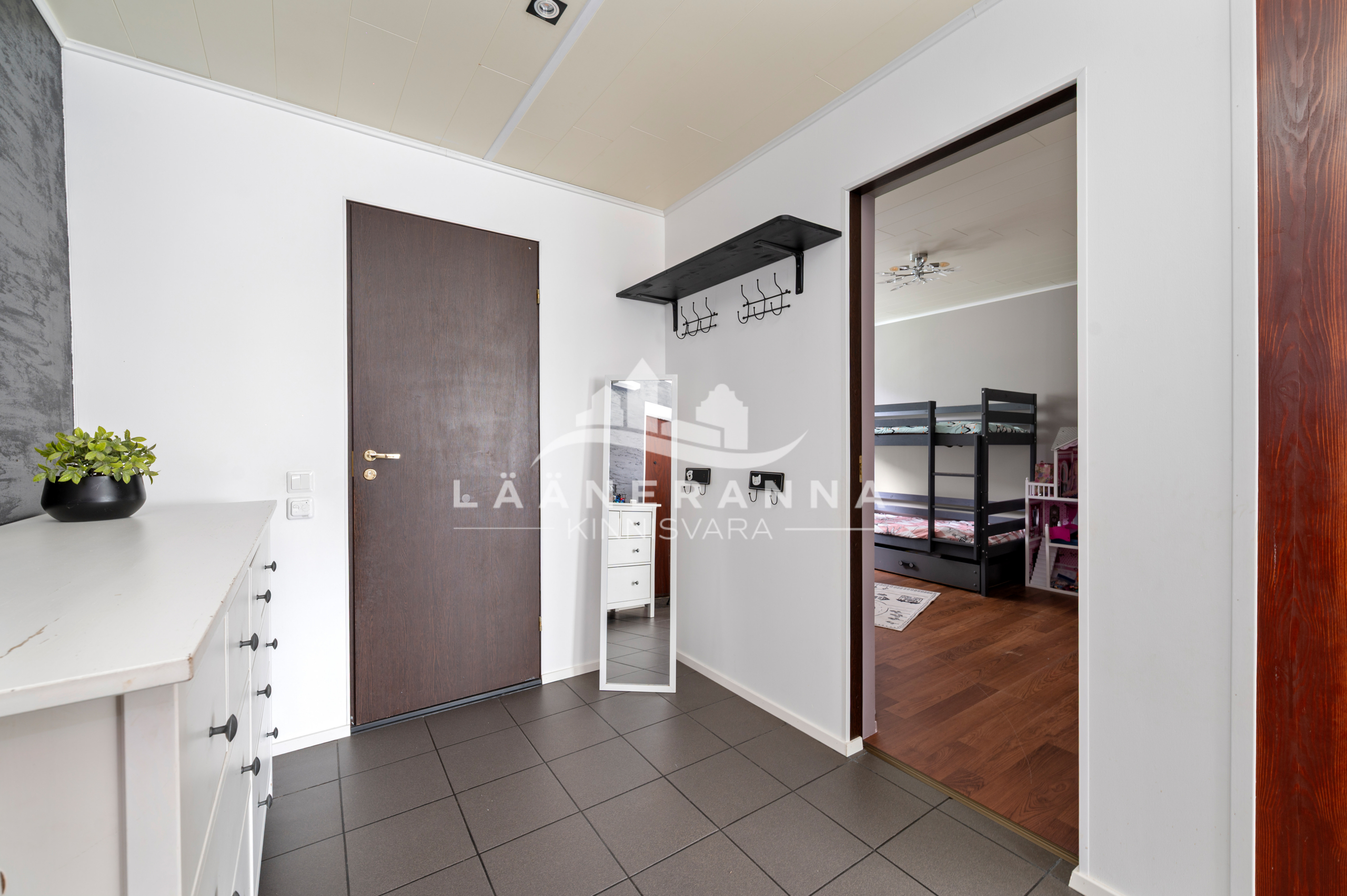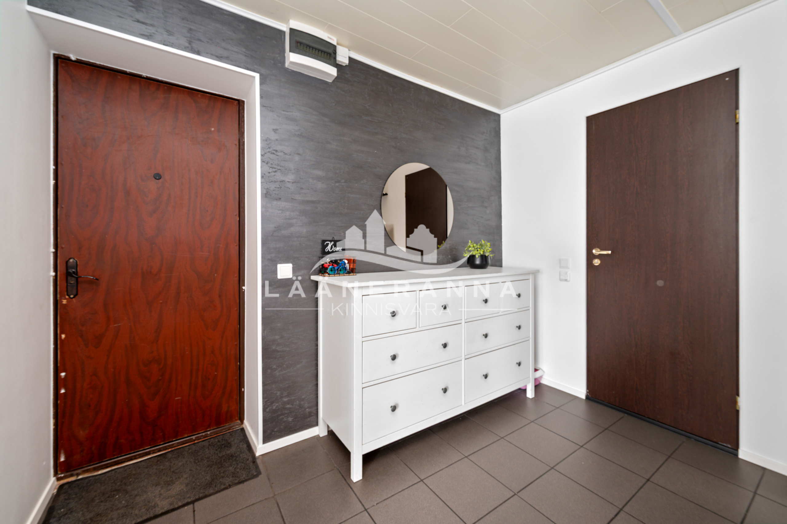 Korterisse sisenedes avaneb esik, millest pääseb kõikidesse korteris asuvatesse ruumidesse. Välisuksest vasakut kätt jääb wc/vannituba, otsevaates asub laste/magamistuba ning paremat kätt jääb avatud köögiga elutuba. Wc/vannitoa ja esiku põrandates lisakütteks elektriküte.