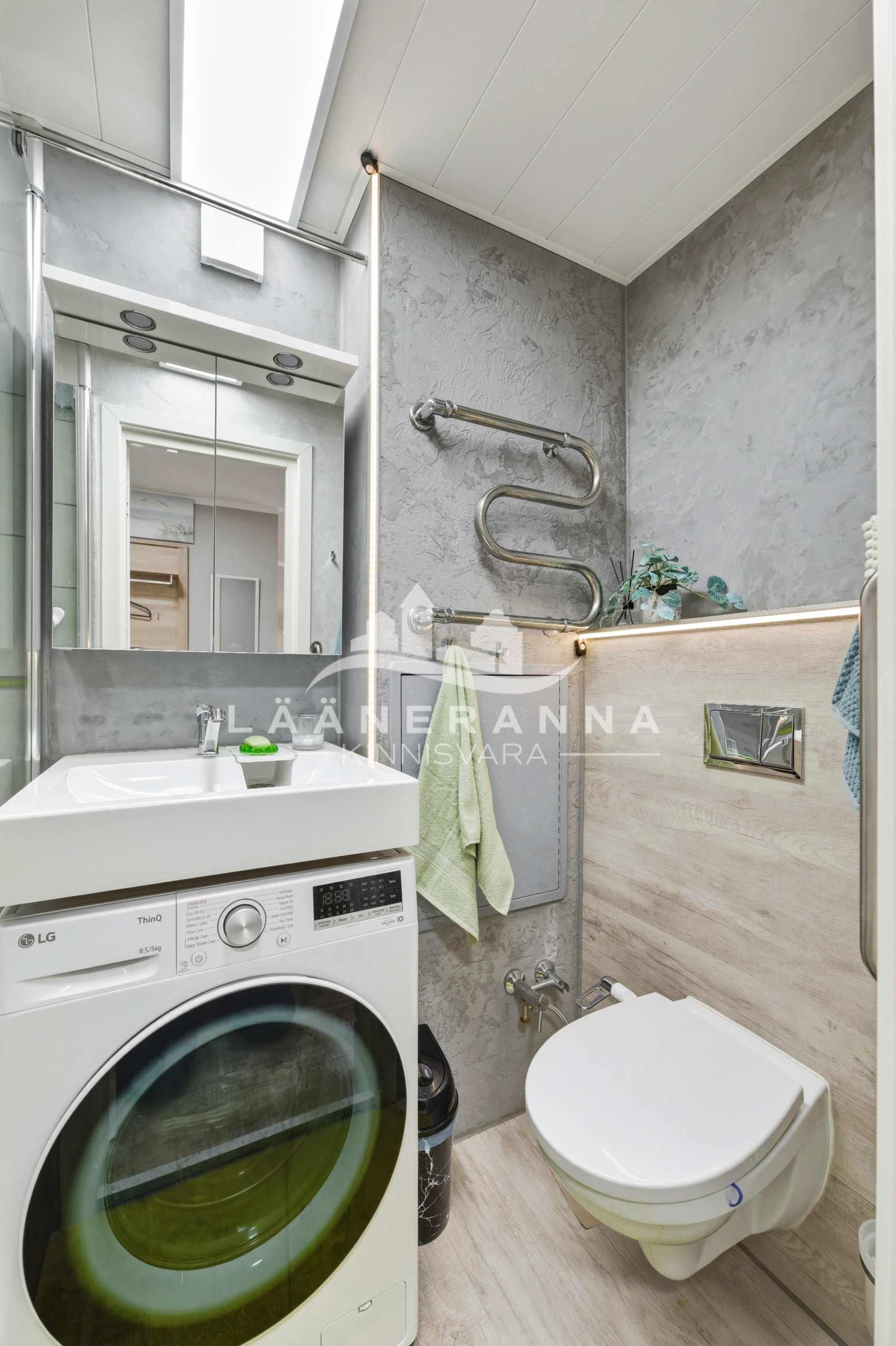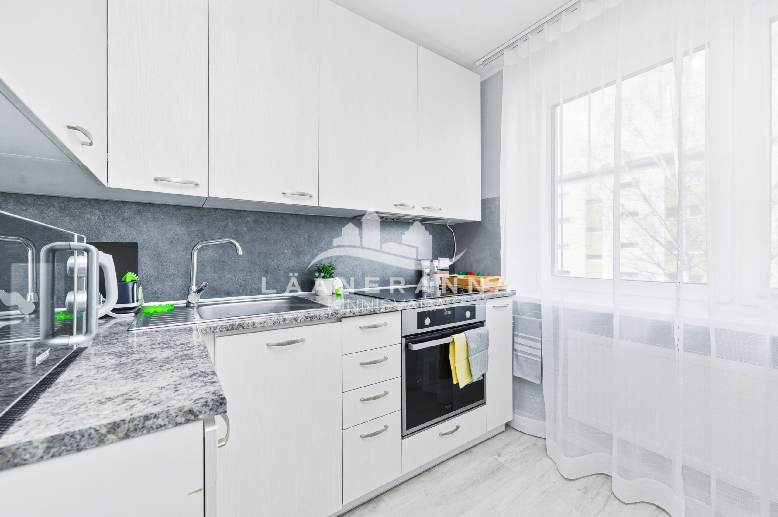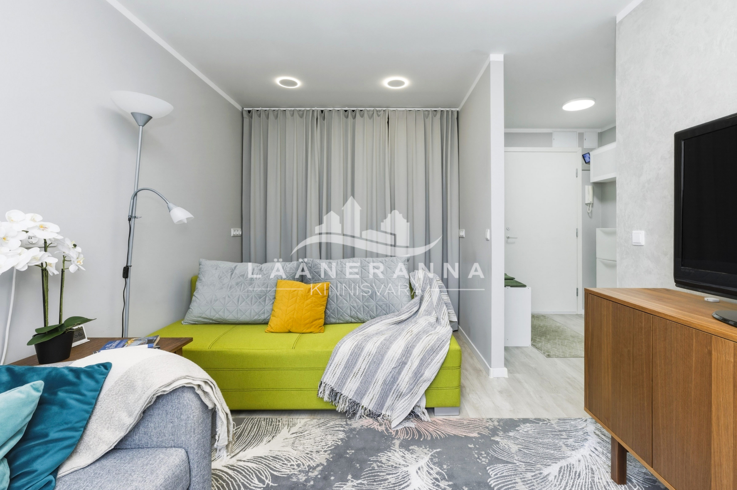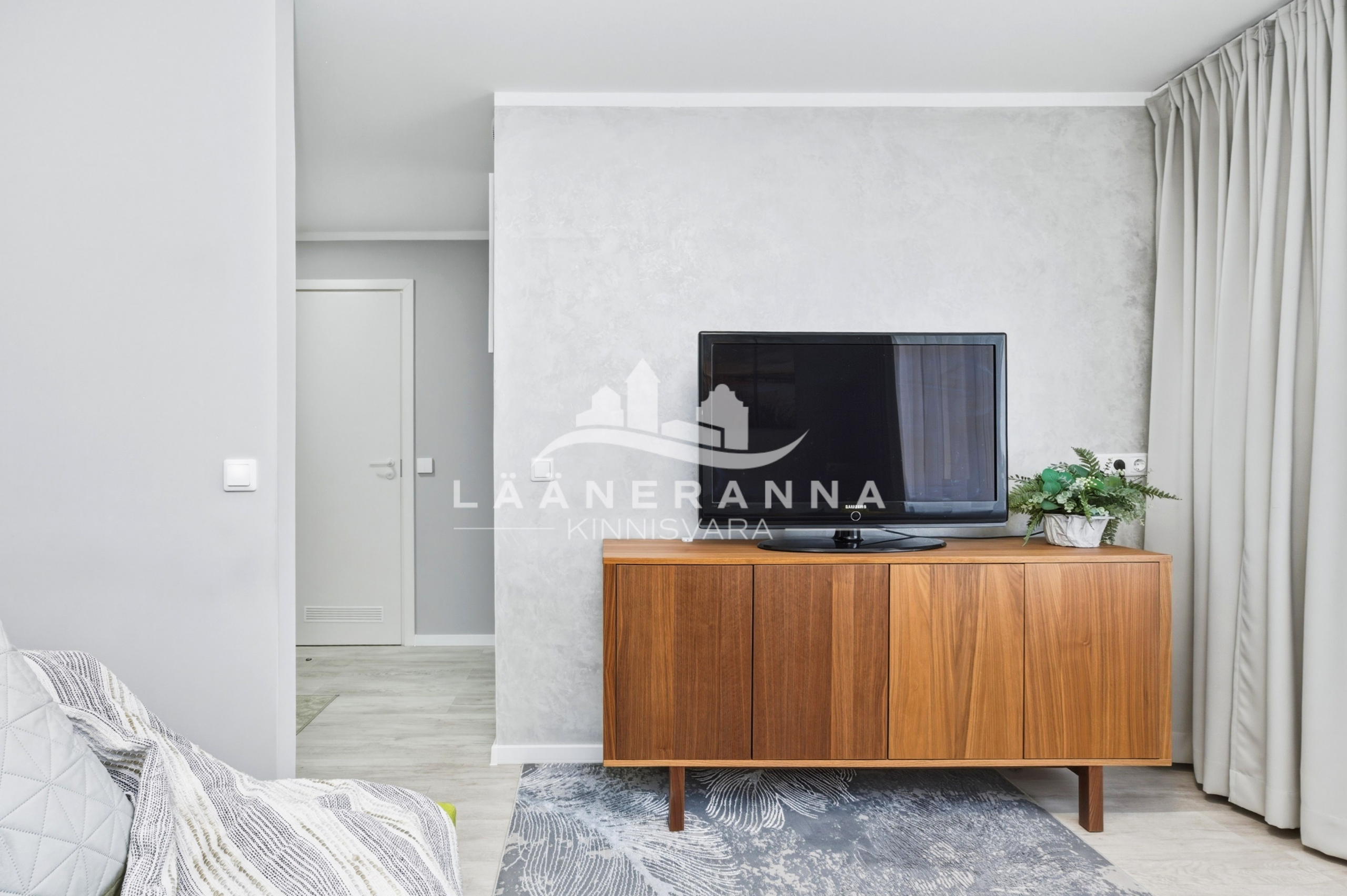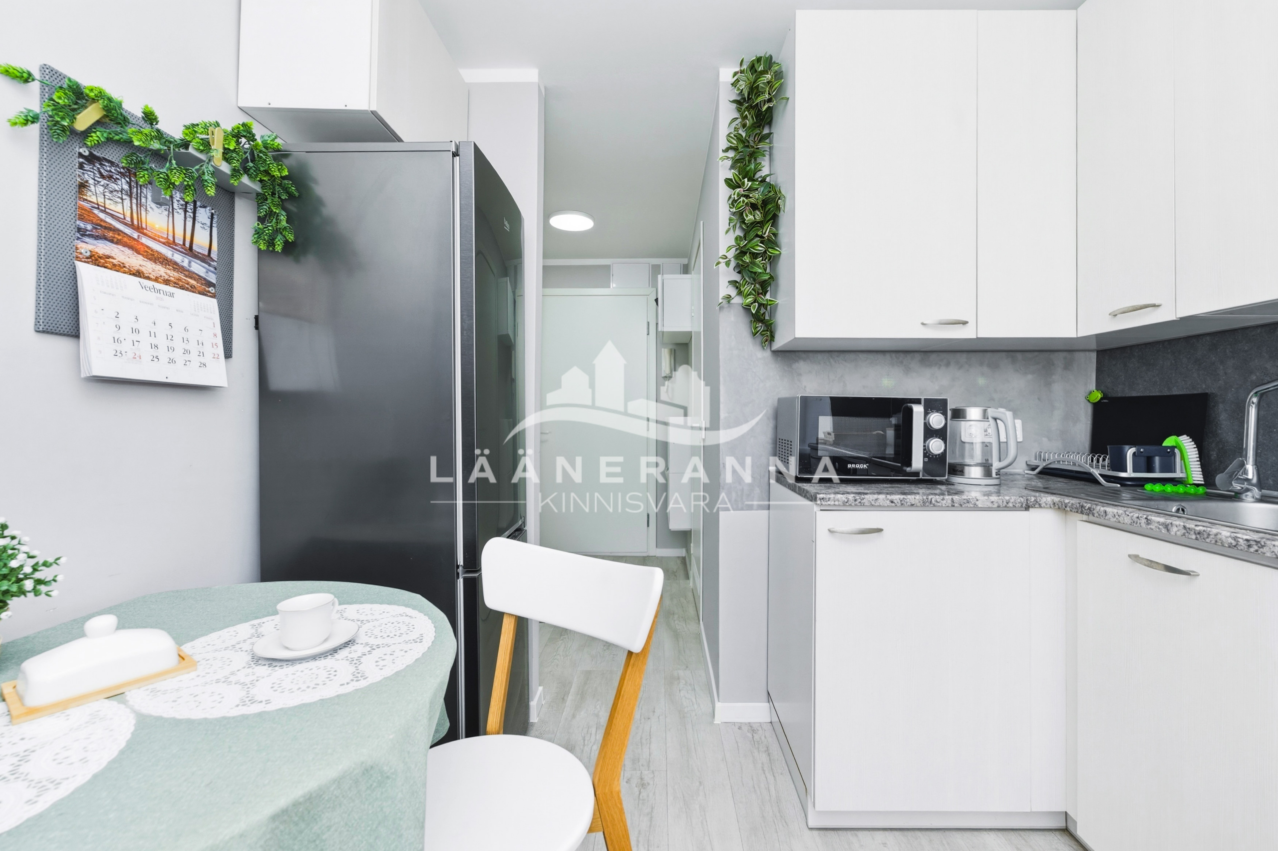 Korteris on integreeritud tehnikaga köögimööbel, toas eraldatud panipaik. WC ja duširuum asuvad koos- olemas ka pesumasin-kuivati. Põrandaid katab vastupidav LVT parkett, seinad ja laed on värvitud, seinad on soojustatud 5cm kivivillaga. Sanruum on viimistletud mikrotsemendiga, dušiala on plaaditud ning eraldatud klaasist voldikuksega. Paigaldatud on pakettaknad, metallist välisuks ning tule- ja helikindel siseuks.